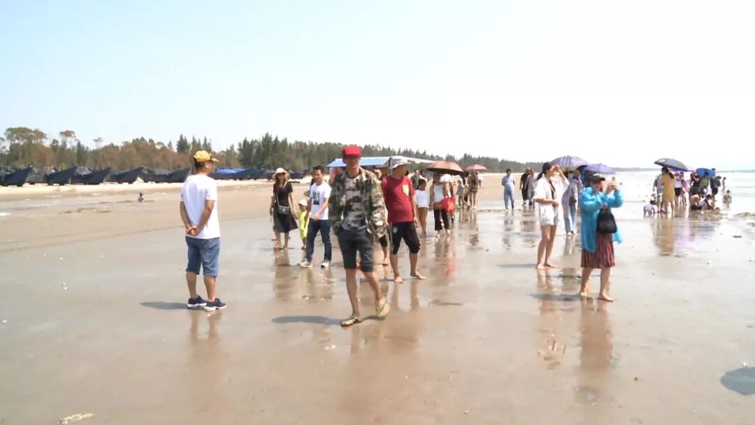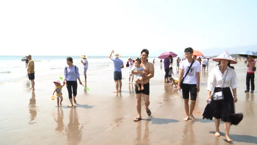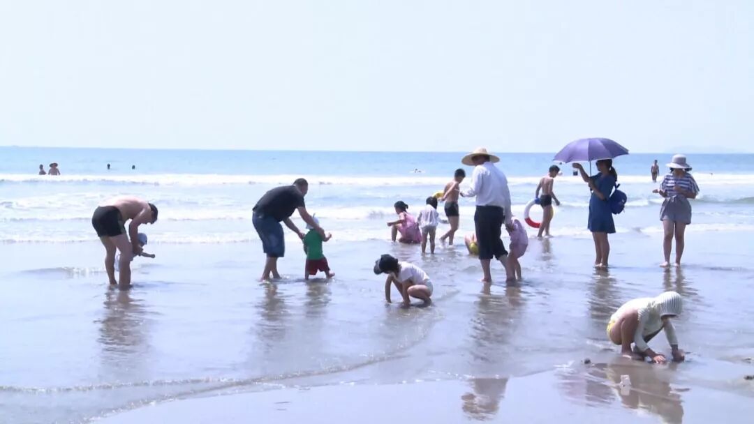 记者李甜:“今天是国庆黄金周的第二天,我现在在阳西县溪头镇的蓝袍湾,大家可以看到此时的蓝袍湾是非常的热闹,游客们三五成群或一家老小,来到这里游水嬉戏、捡拾一些沙滩上的贝类,尽情享受海天一色的美丽风景。”