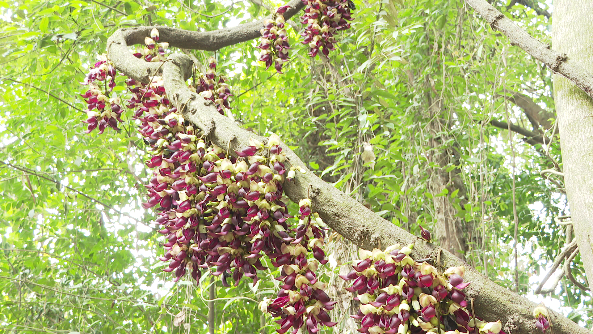 叠层禾雀花千串,留影奇林那愿离。禾雀花是国家二类保护植物,因开花时形状酷似“禾雀”而得名。