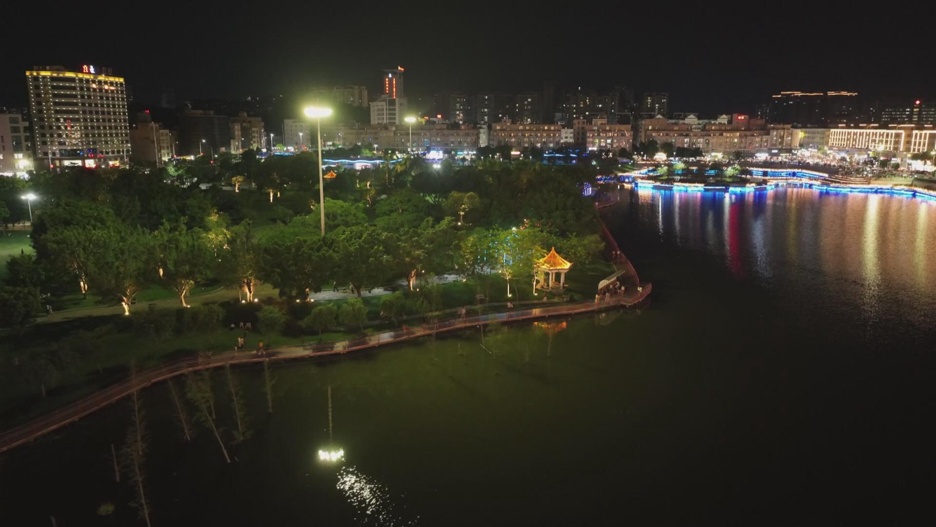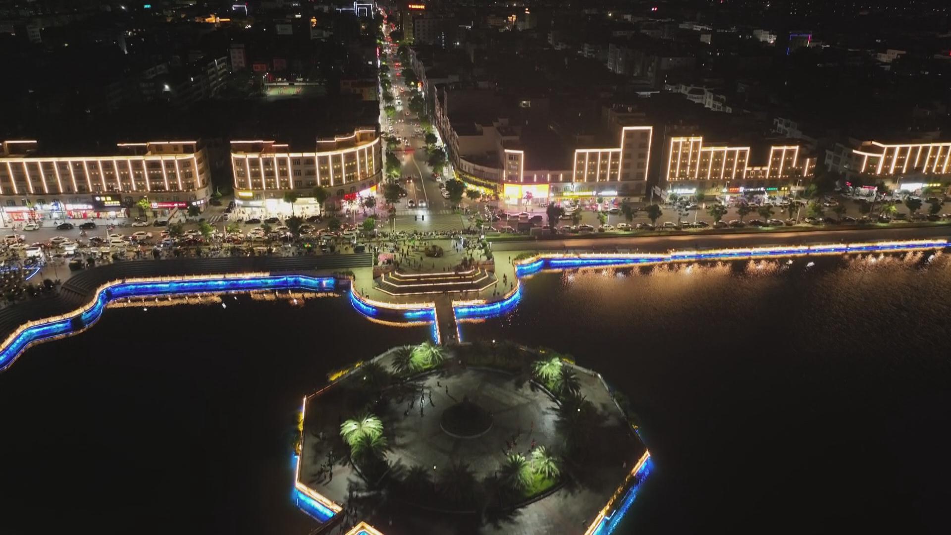 夜幕降临,阳西西湖灯火通明,夜市流光溢彩,灯光倒景于湖水中,游人如织,繁华热闹、美丽迷人的夜景,成为阳西市民休闲打卡地。