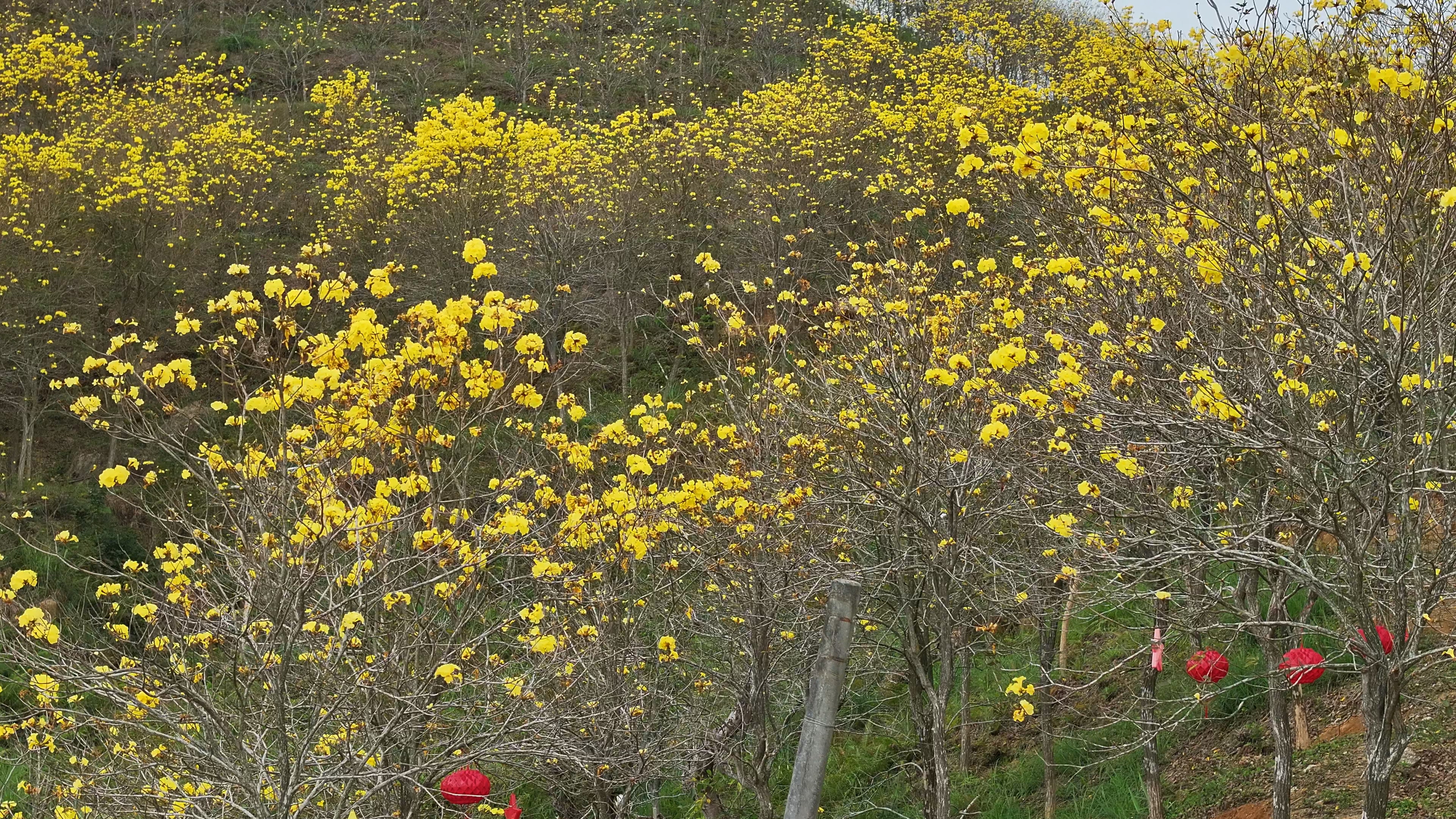 “江南名媛一枝黄,御赐金衣富贵装。帘外风铃知冷暖,多情公子细思量”。这首充满遐想的现代诗词,描绘的正是美丽的黄花风铃。近日,正值黄花风铃的盛放期,大垌山的黄花风铃如约绽放,缀满枝头。金黄色的花簇鲜艳明媚而又纯净无瑕,满山的绚丽成为了暖春里最靓丽的一道风景线。一起去欣赏一下。