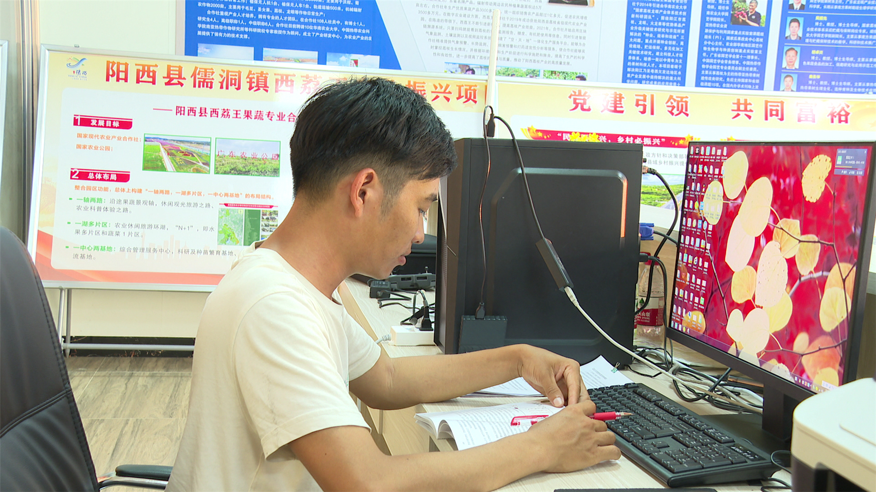 阳西县西荔王果蔬专业合作社项目经理 陈龙舟:我是2016年毕业的,家里人祖祖辈辈好几代都是做农业的,所以想到回到农村。再加上现在国家对农业的支持,还有乡村振兴的建设,就想回到自己的家乡去做一些农业方面的建设。