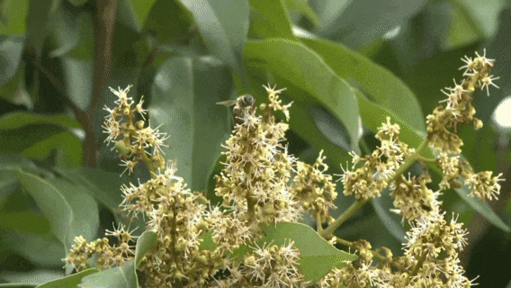 蜂农李祖欢已经养了多年的蜂蜜,他们熟知哪里的蜜源最好,半个多月前就已经将200多箱蜂,拉到这片果园里等待采收荔枝蜜。大量的蜜蜂在果园采蜜,既有助于花粉传播受精,提高果树挂果质量,又可以让蜂农增加一笔收入。蜂农告诉记者,由于今年是荔枝小年,荔枝的来花率不如往年,等待了十几天,才采到今年第一批荔枝蜜。