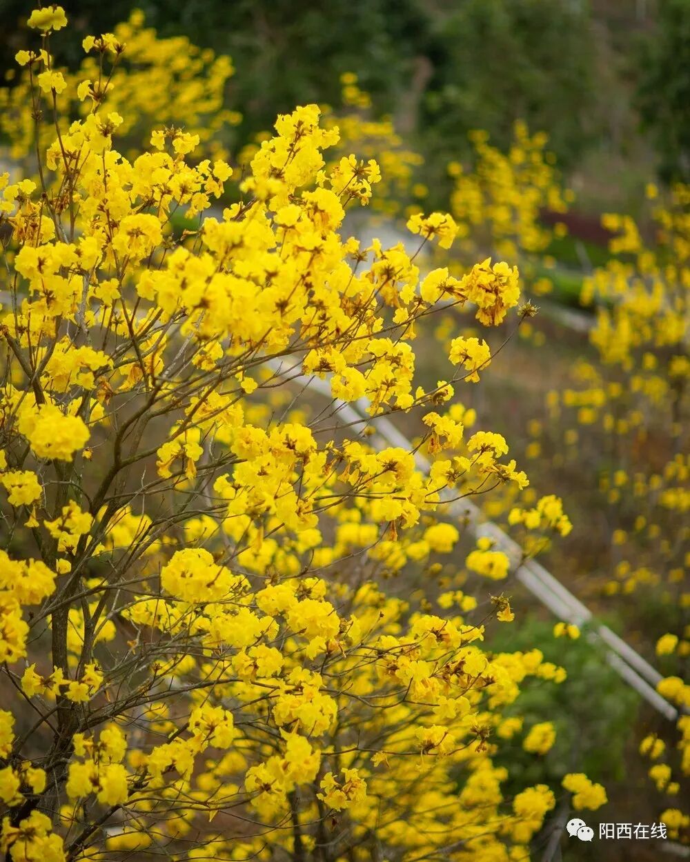 黄花风铃木,是巴西国花,原产墨西哥、中美洲、南美洲。是一种会随着四季变化而更换风貌的树,春天开花,夏天长结果荚,秋天枝叶繁盛,一片绿油油的景象,冬天枯枝落叶,春夏秋冬展现出不同的独特风味。而春天满枝黄花最为美丽可赏。